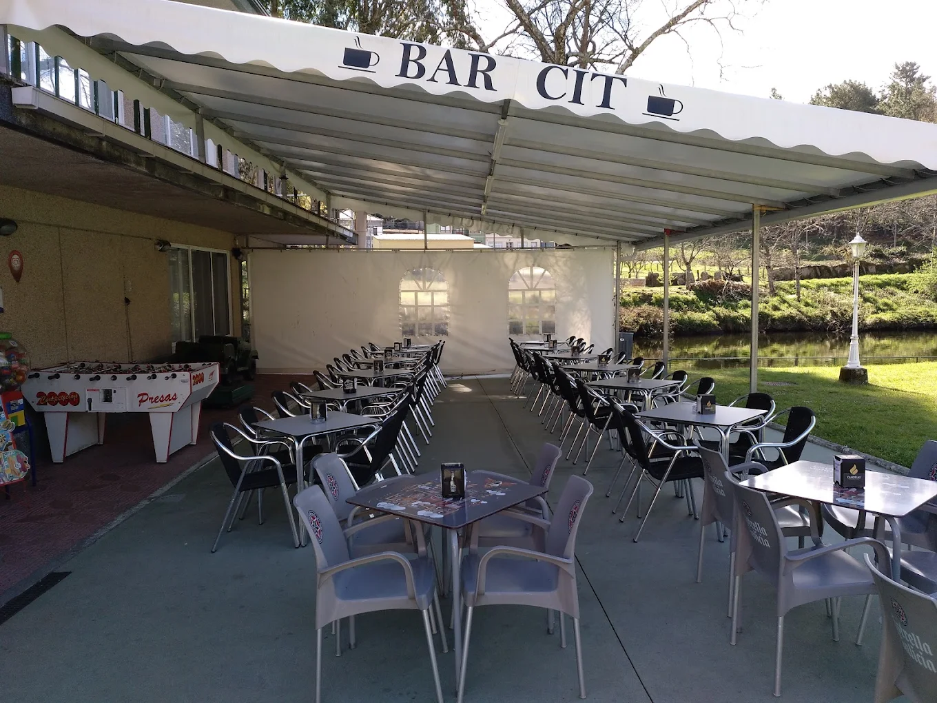 El bar está situado a la orilla del Río Parga, dentro de las instalaciones del Centro de Iniciativas y Turismo.