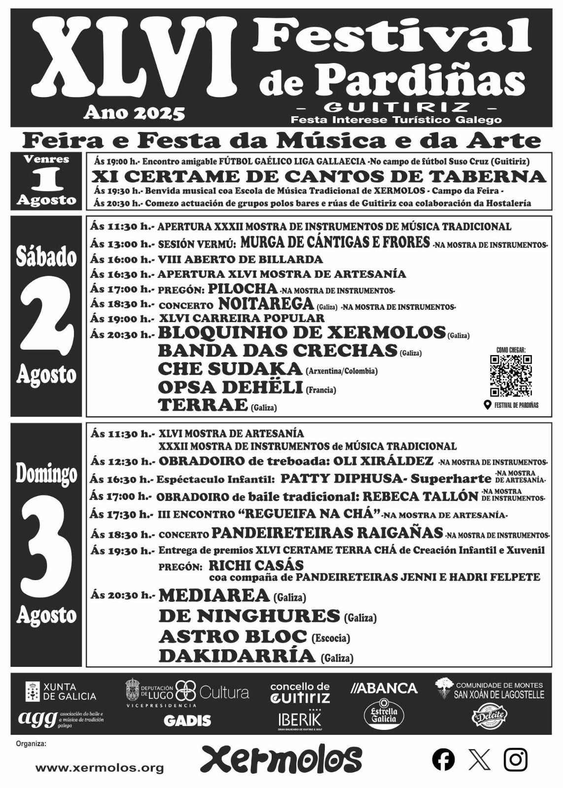 La “Feira e Festa da Música e da Arte”, que es como se conoce oficialmente al festival de Pardiñas, tiene la consideración de Fiesta de Interés Turístico Gallego, y este año 2025, ya va por la edición número 46.